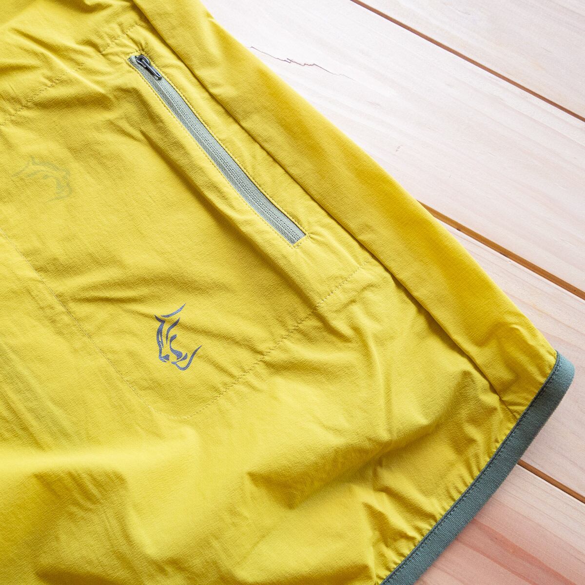 2025年版のウィンドリバーは素材を20D デュラブル ストレッチ ナイロン(Durable Stretch Nylon)に変更。これまで以上に耐久性を大幅にアップし、ランや自転車でのアクシデントに対応し、素材裏面の凸凹感を強めることによって汗による肌への貼りつきを低減しています。