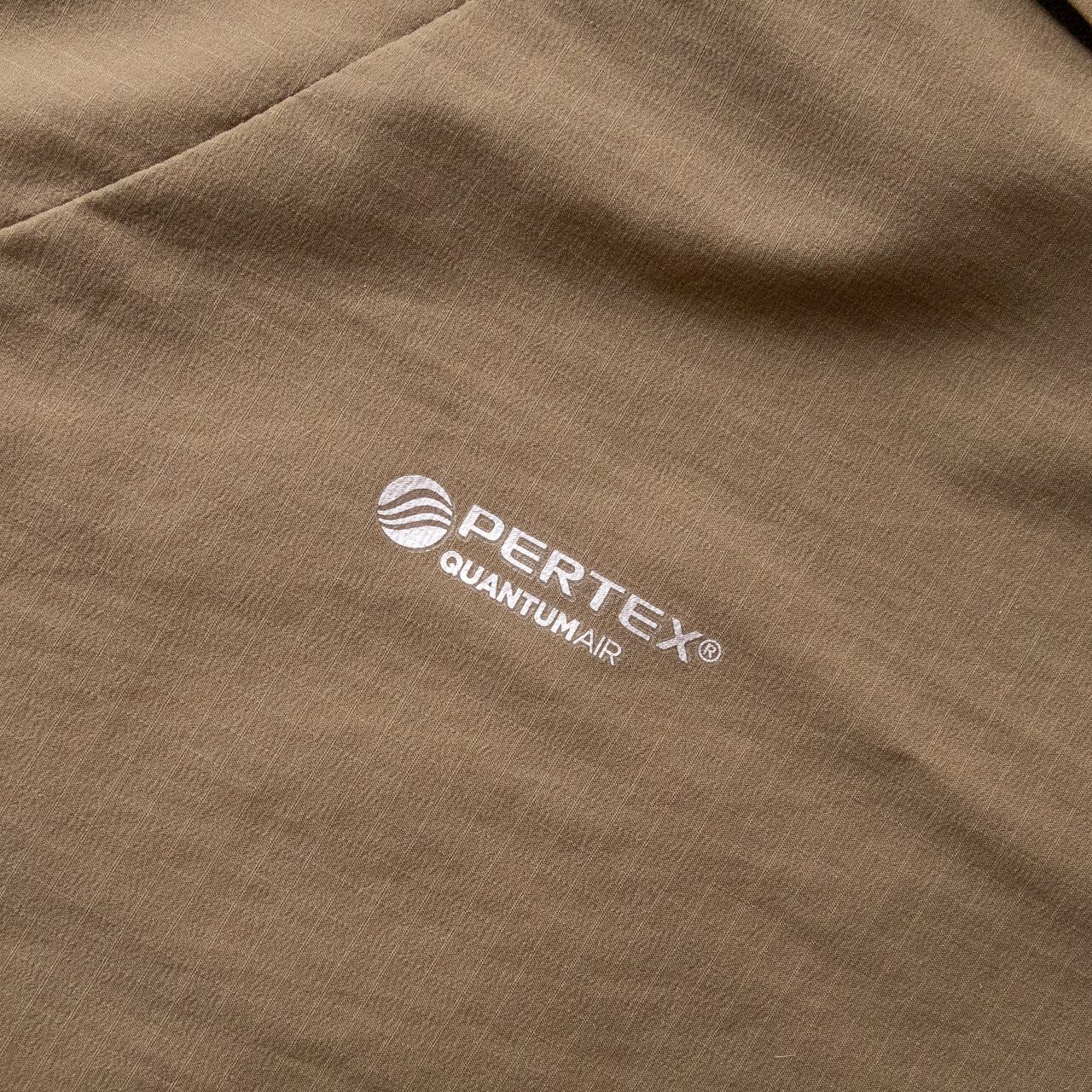素材にはPertex®のクァンタムエアを使用。生地には高い撥水性を与えることで、霧雨やガス程度ならそのまま行動できる汎用性を身に着けています。また防風性にすぐれた素材を使いながら、裏面には微細なデコボコ構造を採用。素材が肌に貼り付く不快さを低減しました。