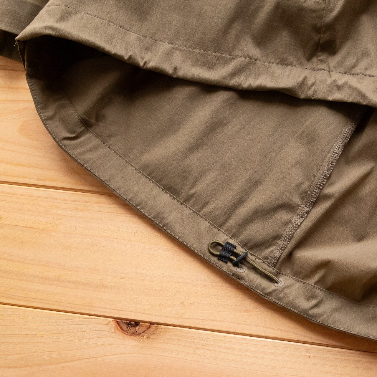 加えて裾にはドローコードを備えているなど、ショートスリーブシャツのスタイルを持ちながらも、機能性は完全にウィンドシェルの領域に達しています。