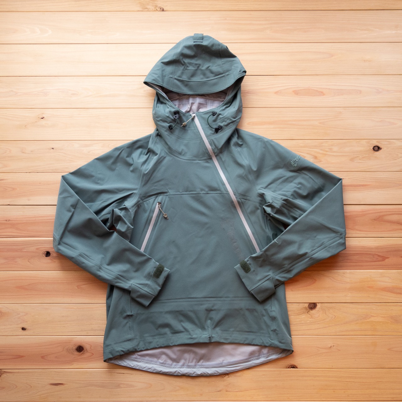 軽く、動きやすく、着ていてストレスがない。生地が柔らかいのでツルギの上にもう一枚羽織ることも可能です。となると、ツルギを着たままハイクアップしても汗をかかない程度の薄着にしておき、稜線に出たところでホバックオーバーフーディーなどを重ねる、というレイヤリングが実現できます。こうしてますますツルギは、脱ぎ着を必要としないハードシェルとしての存在感を増していくことになるのです。